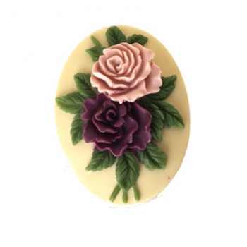 Cammeo Resina Colorful Roses And Ivory 25x18mm