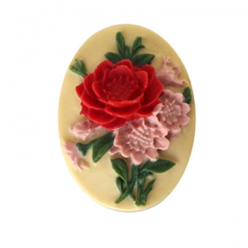Cammeo Resina Colorful Roses And Ivory 25x18mm